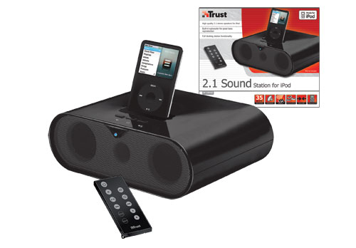 Trust 2.1 Sound Station for iPod SP-2994Bi. Audio output channels: 2.1 channels, RMS rated power: 35 W. Colour of product: Silver