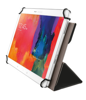 Universal smart folio for 10.1” tablets; with viewing stand and foldable flap to easily reveal the rear camera