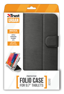 Universal smart folio for 9.7” tablets; with viewing stand and foldable flap to easily reveal the rear camera