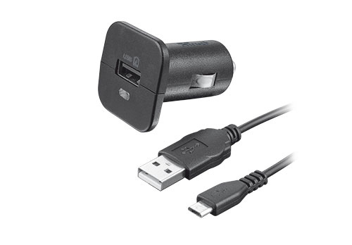 5W Universal USB car charger with micro USB cable to charge your smartphone Universal car charger with 5W USB port. With micro USB cable to charge your smartphone. Ultra compact, fits any car power outlet. Also charges iPhone, iPad mini or iPod (Apple charge cable not included). Reliable design.