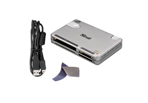 Trust 725 USB2 Card Reader-Writer Pro - External USB 2.0 card reader, supporting 8 different memory card standards. <br>