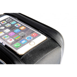 using a smartphone up to 6" on the move, thanks to the PVC touch sensitive window placed on the upper side.