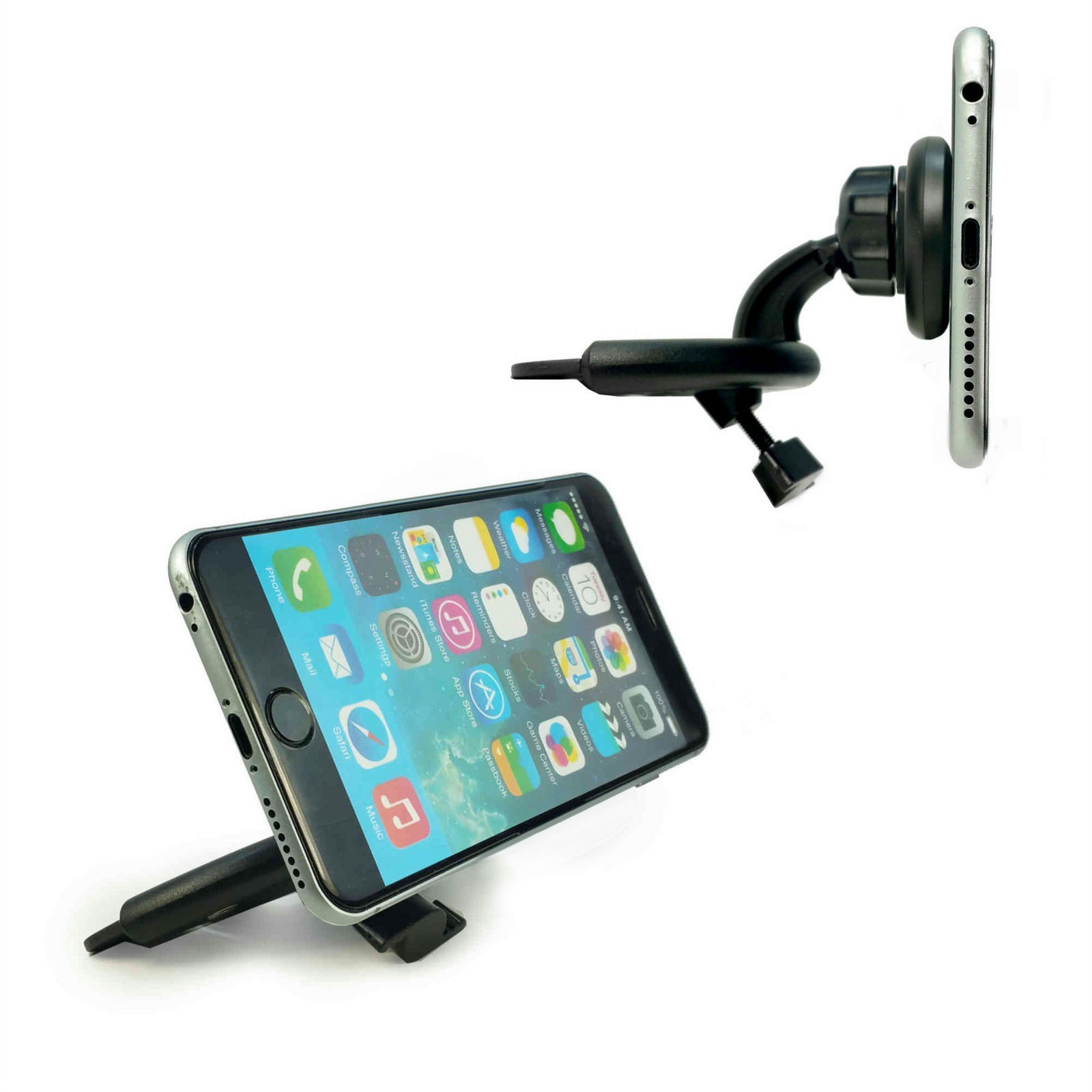- Slots into and Car CD player to allow you to mount the phone below the dashboard for safer driving