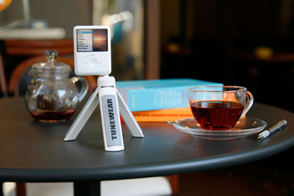 BOOMTUNE mini incorporates a unique tripod design and an amazing 1W x 2 output that is surprising for such a compact size. Just one AAA battery is all you will need to enjoy up to 10 hours* of playback. With a style like you have never seen before, the tripod design can be used with almost any MP3 player from the small iPod shuffle to the iPod classic. It is also suitable for more than just table top use. In fact, you can use it anywhere. Whether you are staying in a hotel, camping, at a barbeque, or just enjoying the outdoors, BOOMTUNE mini will ensure that you can enjoy your favorite tunes no matter where you are!