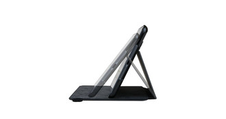 When in the closed position, TUNEFOLIO can be carried like a notebook with iPad held securely inside. The iPad screen is fully protected and the durable elastic band keeps the case tightly shut and prevents iPad from slipping out. This is a great feature to have when sliding iPad into your bag or backpack.