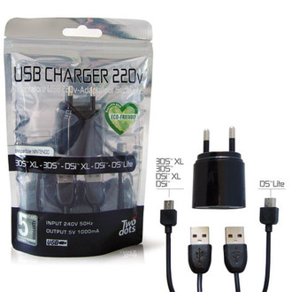 Twodots XJAC0489. Charger type: Indoor, Charger compatibility: Portable gaming console, Power source type: AC. Colour of product: Black. Cables included: USB