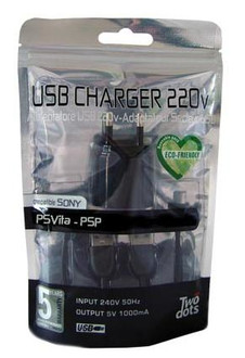 Twodots XJAC0490. Charger type: Indoor, Charger compatibility: Portable gaming console, Power source type: AC. Colour of product: Black. Input voltage: 100 - 240, Output voltage: 5 V, AC adapter output current: 2 A. Cables included: USB