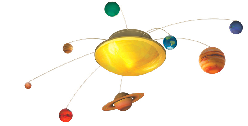 An orbiting Solar System in your room! Now you can explore the wonders of the solar system right in your own room! Just look up at your ceiling and watch as all eight planets orbit around the light-up sun.