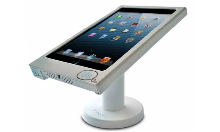KC020P - Secure Pole Stand for iPad Mini Enclosure, HBA Made from durable gloss powder coated lightweight aluminium, our enclosure embodies strength, security, durability and style. Once the tablet is inserted into the enclosure, it is then secured shut using our patented anti-drill, anti-pick lock, which is discretely located in the corner.
