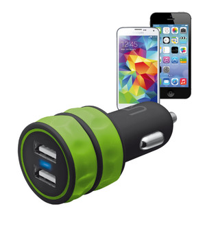 Universal dual USB car charger to charge 2 smartphones at the same time, Lime