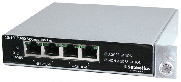 The USRobotics 10/100/1000 Copper Aggregation Tap eliminates SPAN port contention, oversubscription, and configuration errors with full duplex monitoring, simple installation, and reliable access to your Gigabit Ethernet segments. This tap faultlessly combines and processes both the TX and RX streams of data into a single data stream allowing any connected monitoring device (analyzer, IDS, probe) to receive a full-duplex stream of data with only one NIC. Improve visibility with two monitor ports sending identical copies to separate network tools for simultaneous monitoring and analyzing. For dual-receive tools, a half-duplex option is available for individual TX and RX streams. Ideal for security applications or anywhere you need non-intrusive dedicated access to your network links for advanced or consolidated monitoring.