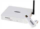 Includes integrated ADSL2+ modem, broadband router, firewall and 802.11g wireless access point and 802.11g USB adapter.