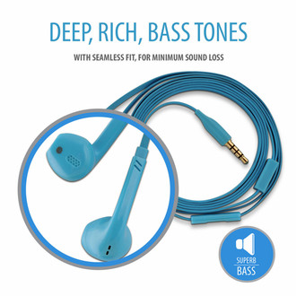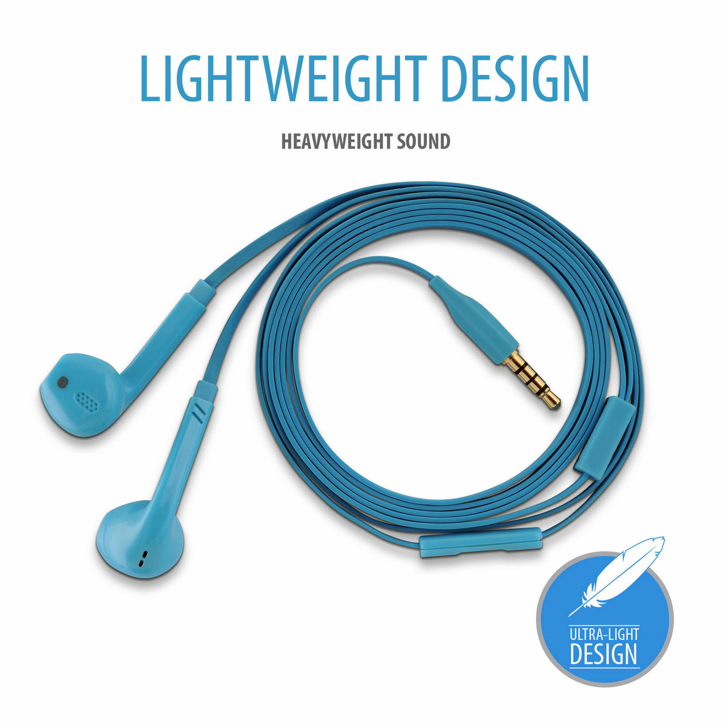V7 In-Ear Stereo Earbuds Blue with In-line Microphone - handsfree, tangle free with flat cable design
