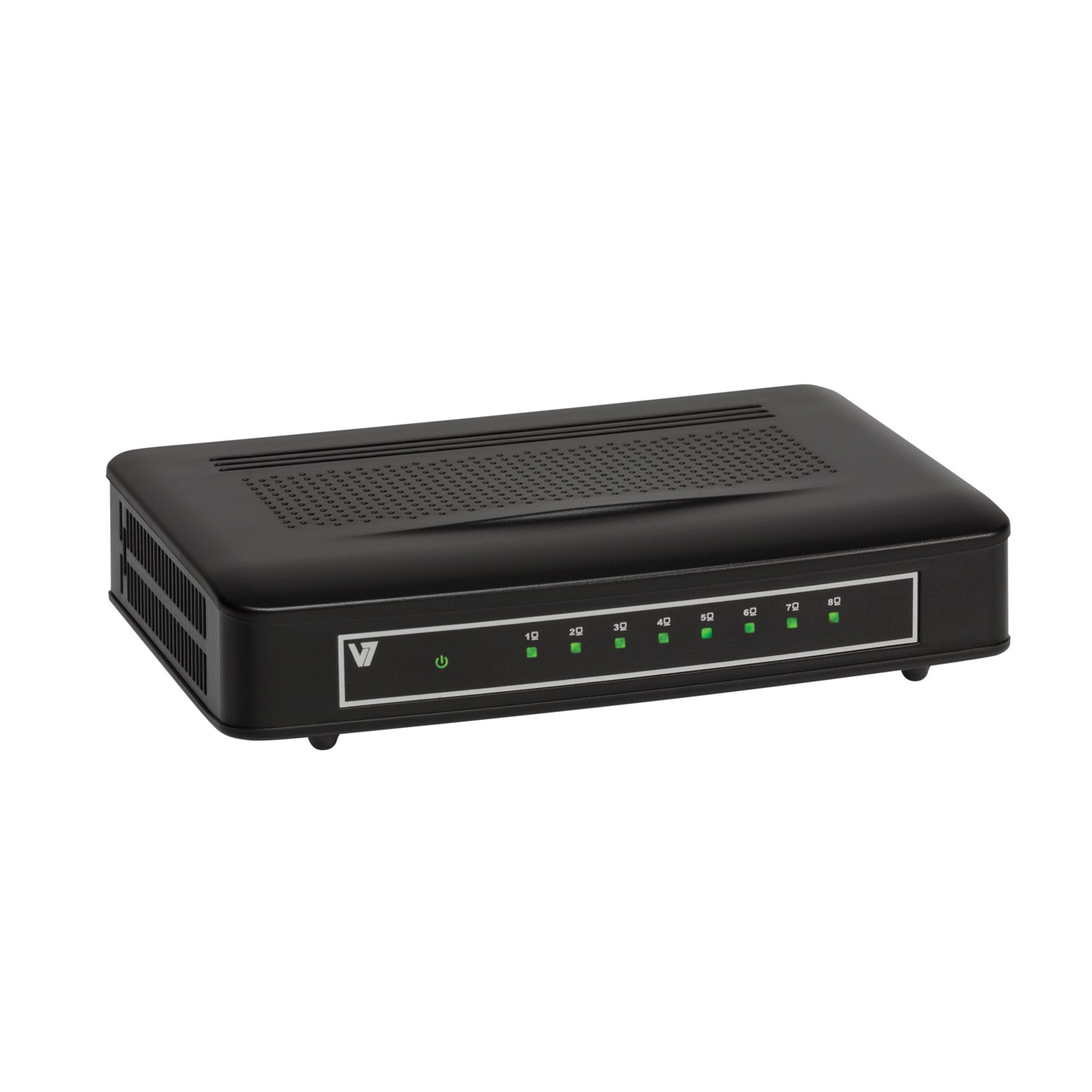 Take the next step in connectivity speed and efficiency at your home or small business. Add the V7 8-Port Unmanaged 10/100 Ethernet Networking Switch to connect multiple computers as well as cameras, print and media servers, storage devices, VoIP phones and more to an Ethernet or wireless LAN. Unlike a conventional hub, the V7 networking switch offers dedicated bandwidth for every computer or device. It is ideal for small or growing networks requiring reliable and affordable network performance.