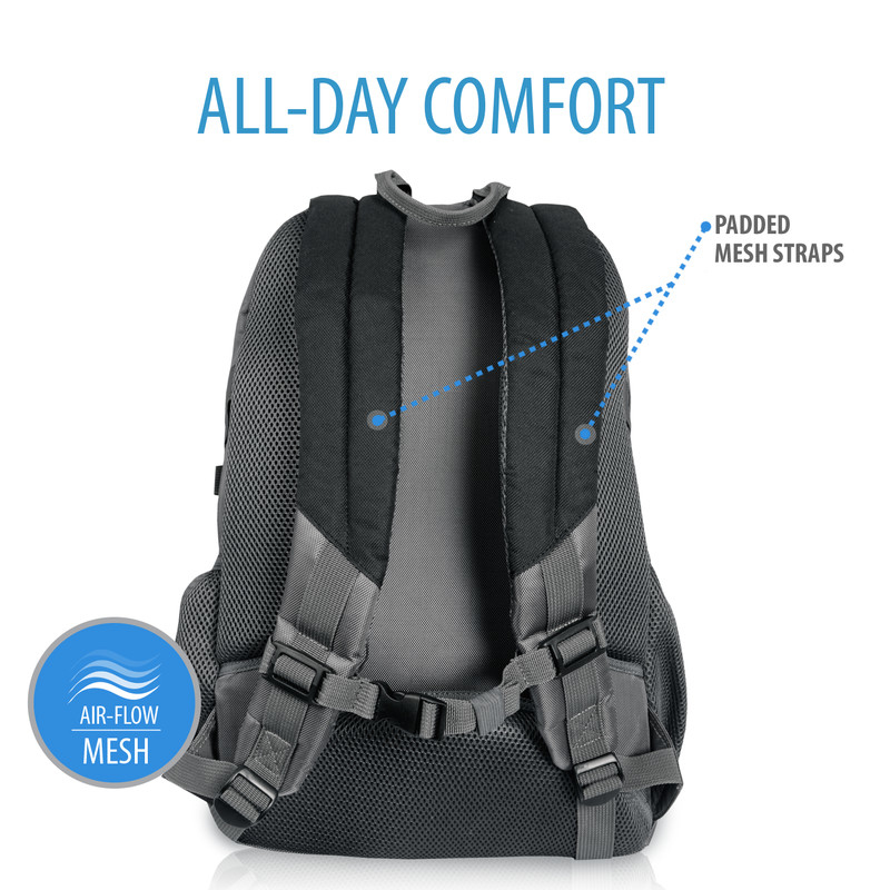 -Padded mesh adjustable shoulder straps allow for maximum comfort dryness