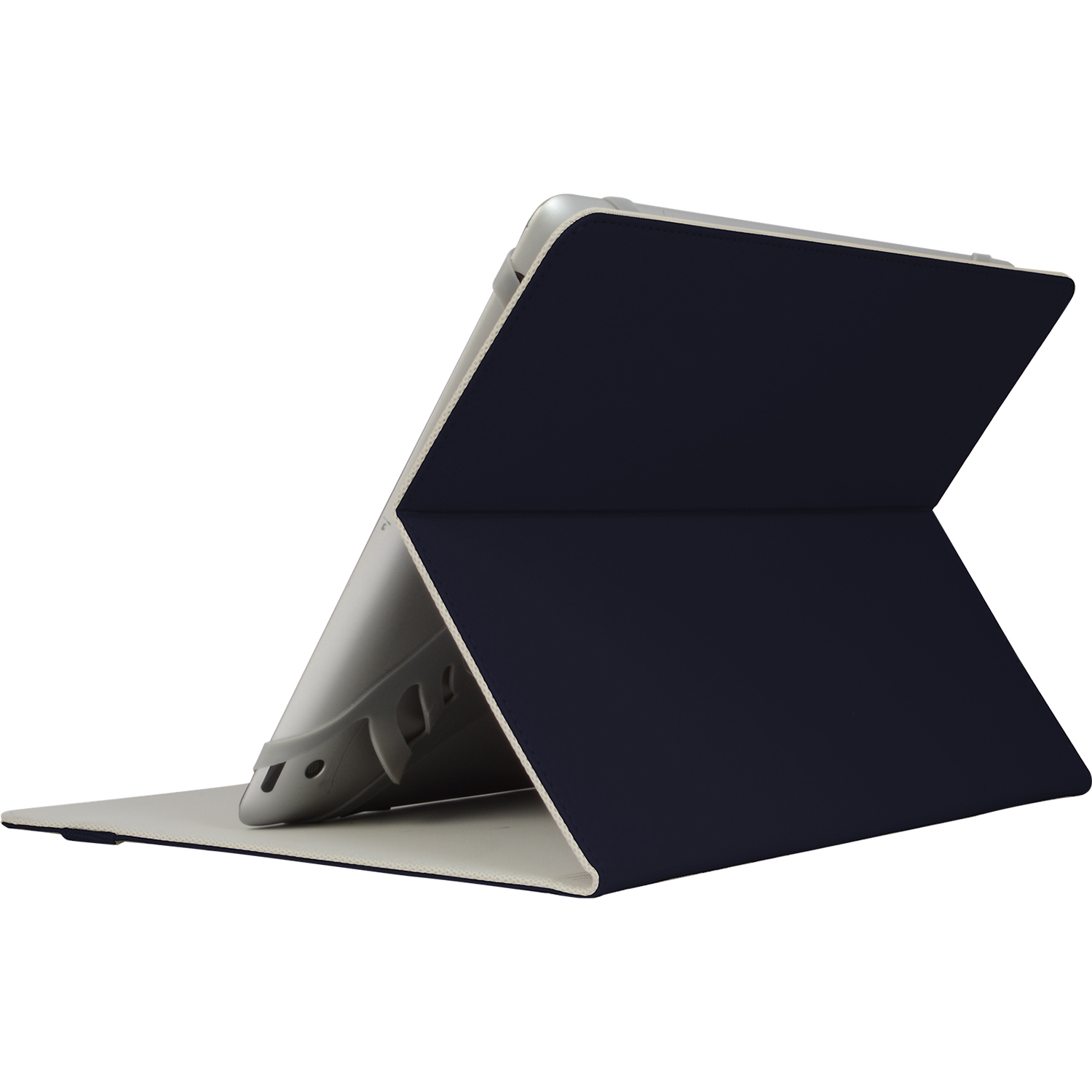 The V7 Universal Folio fits iPad and Tablet PCs between 9" to 10.1" and provides a stylish protective solution for the on-the-go professional. The folio's anti-slip inner lining allows your device to adjust to perfect viewing angle for watching movies, typing or video chat. You can easily access ports, and function buttons. The folio case offers your iPad or tablet PC excellent protection from dust, scratches, oily finger prints, and gentle impacts. The folio’s form fitting universal silicone "X" band and elastic closure strap will keep your tablet in place during transport. This case has anti-slip interior lining, providing protection from scratches. The hard outer cover comes in three colors of black, dark blue and red.