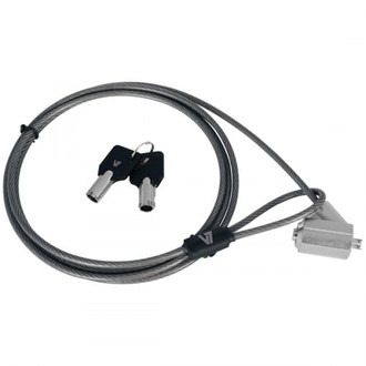The V7 keyed security lock is designed for technology products that have a security lock slot and fits practically all notebook computers manufactured today. The security lock provides a simple and effective way to secure notebooks, desktops, monitors and projectors. The push-to-lock function and 45 degree cable design insures easy operation. The two security keys have vinyl jacketed key heads that are easy to hold and operate.