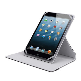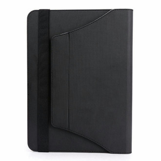The V7 Universal Rotating Case and Stand fits iPad and Tablet PCs between 9" to 10.1" and provides a stylish protective solution for the on-the-go professional. The folio's anti-slip inner lining allows your device to adjust to perfect viewing angle for watching movies, typing or video chat and easily rotates from portrait to landscape view mode. You can easily access ports, and function buttons. The folio case offers your iPad or tablet PC excellent protection from dust, scratches, oily finger prints, and gentle impacts. The folio’s form fitting universal silicone "X" band and elastic closure strap will keep your tablet in place during transport. This case has anti-slip interior lining, providing protection from scratches. The hard outer cover comes in three colors of black, dark blue and red.
