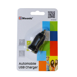 Automobile USB Charger Now, your electrical products are mobile ready with Msonic® Power Up series. This automobile USB power charger converts DC 12-24V electricity provided by the car into 5 V. It can be used with all USB powered products, cell phones, PDAs, digital cameras/videos, lights, Mp3/Mp4 players, chargers and etc… Make your automobile travel as comfortable as it can be.