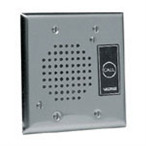 Flush Mount Door Plate Speaker, Stainless Steel, Weather-resistant with call button for handsfree communication from an outside door or entrance. Mounts in standard double gang electric box. Ideal for shipping/receiving docks or businesses after hours.