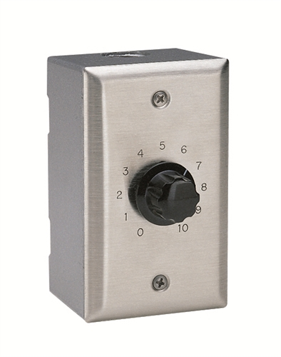 Speaker Volume Control, Wall Mount, control volume of up to 150 one-way speakers. - Stainless Steel Hardware - Wall Mount Volume Control - Includes Mounting Box