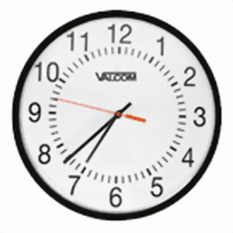 The analog wireless clocks are available in battery (2 "D" cell), 24 VDC/VAC and 110 VAC. Each Valcom clock receives the wireless signal and then becomes a repeater. This means each clock in an area increases the quality of the signal as it perpetuates through the building. The battery powered clocks transmit and receive the signal once every four hours (in order to conserve battery life), at 12, 4 and 8 o’clock. 24 volt and 110 volt models transmit and receive data every minute.