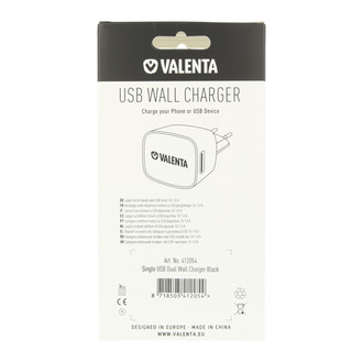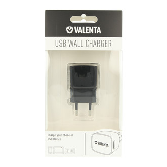 Valenta 412054. Charger type: Indoor, Charger compatibility: Mobile phone, Smartphone, Power source type: AC. Colour of product: Black. Port 1 output current: 1 A
