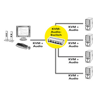 KVM Switch, 1 User - 4 PCs, DVI, USB, Audio