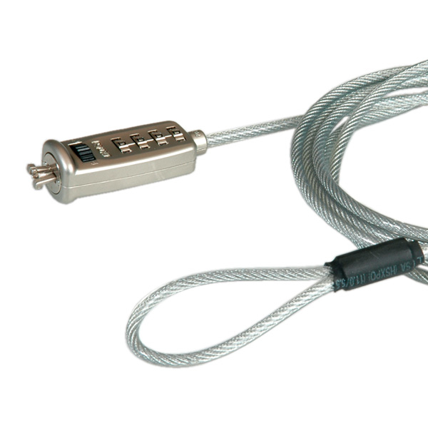 <ul><li>Easy use and installation</li><li>Excellent price-performance ratio</li><li>Dedicated for every notebook with "security hole"</li><li>Security lock of nickel-plated steal with 4 digital number wheels</li><li>Steel cable (thickness: 4 mm) with transparent PVC</li><li>Length: 2.0 m</li></ul><br /><ul><li><b>Content:</b> Notebook cable lock</li></ul>.