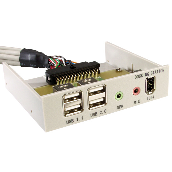 The Multifunction front panel offers you following ports: - 2x USB 1.1 ports - 2x USB 2.0 ports - 1x IEEE1394 (FireWire) port - 1x Microphone - 1x Speaker