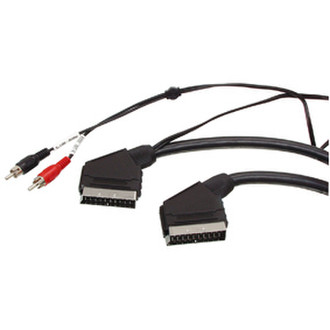 SCART 21p9c (M) - SCART 21p9c + 2x RCA (M), 1.5 m <b>21p scart plug & 2 phono plugs (audio) - 21p scart plug</b>