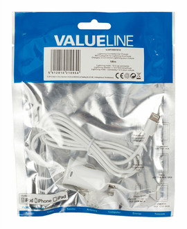 Lightning connector car charger lightning male - 12 V car connector 1.00 m white
