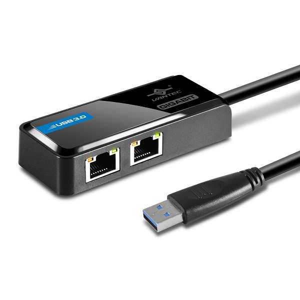 Vantec introduces the USB 3.0 To Dual Gigabit Ethernet Network Adapter bringing you Dual Gigabit Ethernet through a single USB port. With the ease through a single USB connection, you can gain gigabit network speeds of up to 1000Mbps and be connected to two separate physical networks for any special function like network management, networked virtual machine configuration, bridging, gateway management, networking troubleshooting and more. This is a convenient solution for any IT administrators to bring along with their systems such as laptops, Ultrabooks or Macbook Airs to analyze and manage any networks. This USB 3.0 To Dual Gigabit Ethernet Network Adapter comes with a wealth of features to help enhance its use.