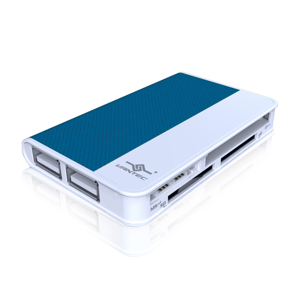 The Vantec Culoré 66-in-1 Card Reader & Hub combines style with functionality. With its 4 dedicated memory card slots, the Culoré will support virtually any type of memory card on the market today. Satisfying the need of more USB ports, Culoré is conveniently equipped with 3 USB 2.0 ports for all your USB devices. The cleverly designed USB strap fashionably complements the lavishly embellished card reader available in colors of Pink, Blue or Green. Whether you are transferring or copying simultaneously from card to card or directly to the computer, the Vantec Culoré is the ideal memory card reader for anyone desiring functionality and style on the go.