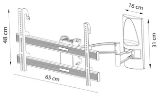 VCM Morgenthaler WS 300. Maximum weight capacity: 35 kg, Minimum screen size compatibility: 81.3 cm (32"), Maximum screen size compatibility: 177.8 cm (70"). Tilt angle: -15 - 15°, Swivel angle: 90°. Colour of product: Black, Material: Steel. Width: 65 cm, Height: 48 cm, Depth (min): 15 cm
