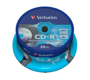 CD-R AZO Data Vinyl Printable, 52x, 25 Pack Spindle, 700MB