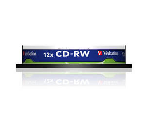 Verbatim CD-RW 8x - 12x. Type: CD-RW, CD storage capacity: 700 MB, CD write speed: 12x. Quantity per pallet: 10 pc(s)