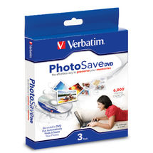 Verbatim’s PhotoSave DVD allows you to quickly backup and archive up to 2,000* photos stored on your PC or digital camera. This recordable DVD searches and stores over 80 different types of photo and video files, protecting your valuable photo memories from hard drive crashes.