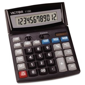 12 digit calculator is perfect for desktop use either at home or in the office. Features a large LCD tilt display for easy viewing. Environmentally friendly, this calculator is manufactured with 40% recycled plastic. Cost/sell/margin keys make for quick and easy profit margin calculations (simply enter two variables and the third automatically appears). Other functions include: automatic tax keys, selectable decimal and rounding slide switches, percent key, automatic constants, change sign key, backspace key, 3 key independent memory, automatic power down, and hybrid power (solar/battery backup).