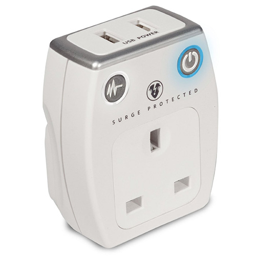 With surge protection via the 13A socket this unit protects any connected equipment and provides two USB charger outputs that are ideal for recharging iPhone, iPad, iPod, MP3, mobile phones and digital cameras.