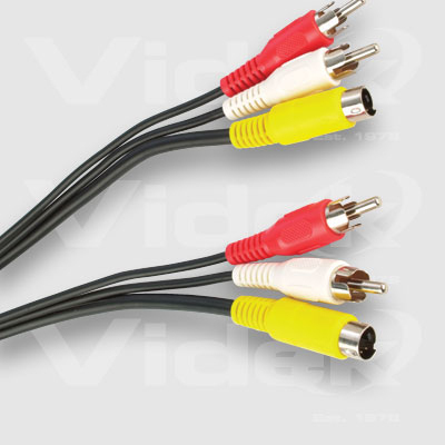 The cables feature either the Mini 4 pin DIN or S-VHS connector together with 2 phonos (stereo audio) to the same. Alternatively, they feature the Scart or alternative phono configuration.
