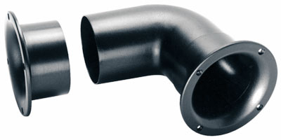 Bent bass-reflex vent with two flow-resistant optimized trumpet-shaped vent outlets to prevent air-flow noises and friction losses.