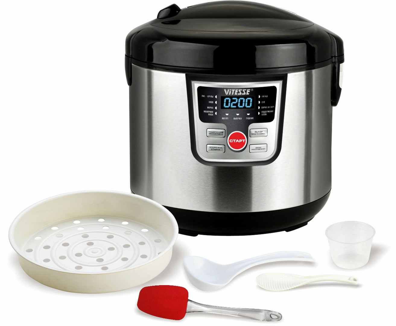ViTESSE VS-581. Capacity: 5 L, Power: 900 W, Cooking programs: Meat, Soup, Steam. Colour of product: Black, Stainless steel, Display type: LED. AC input voltage: 220-240 V, AC input frequency: 50/60 Hz