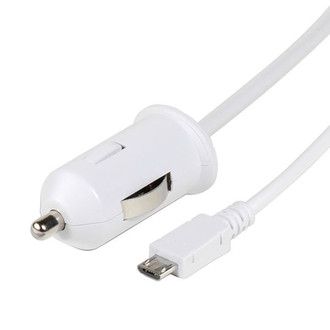 Car charger, Universal, Cigarette lighter, 1 x Micro-USB socket, 1 A, White