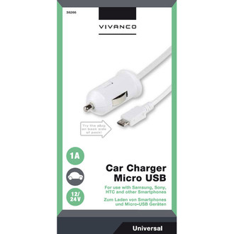 <b>VIVANCO Car power supply with micro USB plug, 1000 mA, white</b>