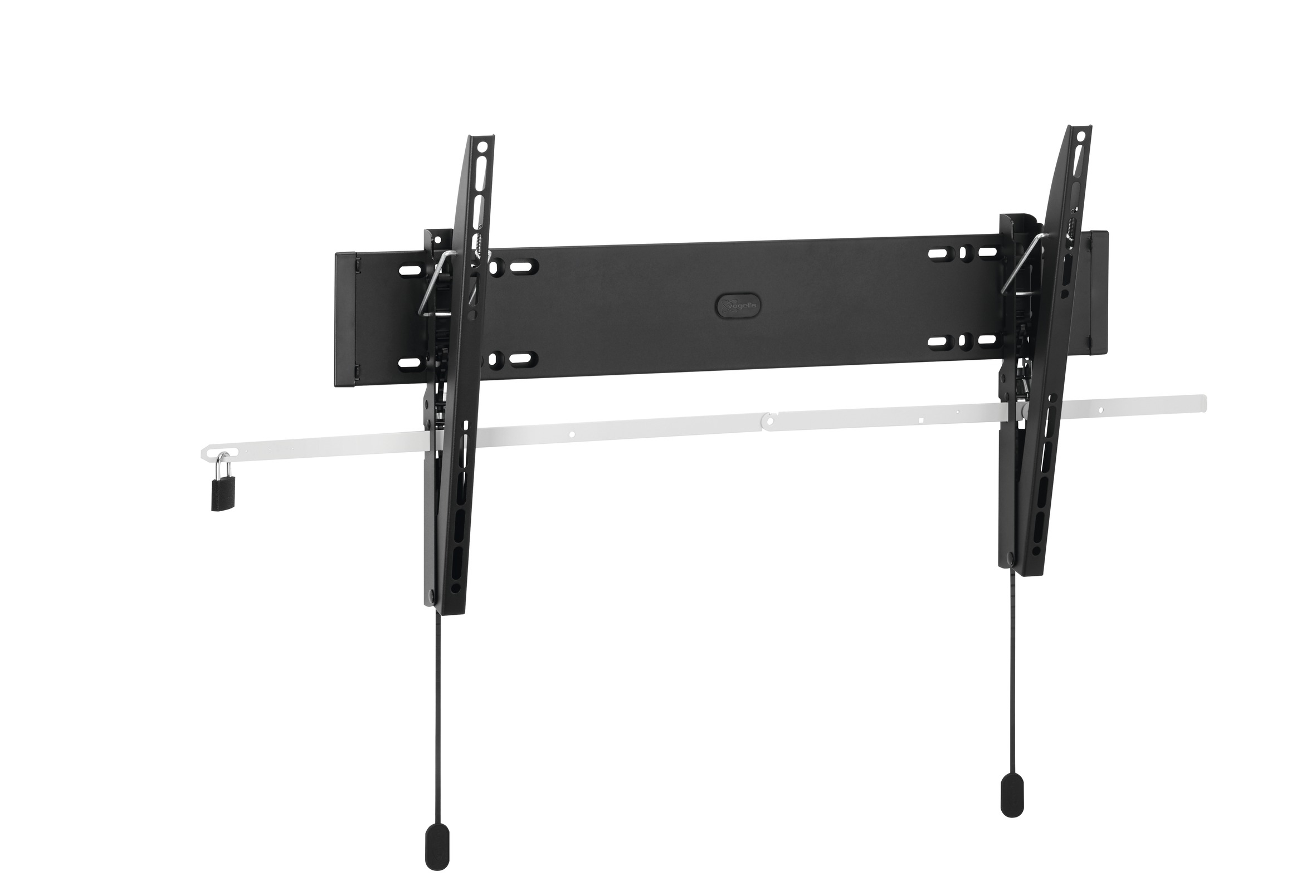 For displays mounted high on the wall, tilting the display forward helps create a better viewing angle. The PFW 4610 wall mount, 52 mm deep, can tilt up to 15°, in 0°, 7°, 12° and 15° increments. The PFW 4610 wall mount features a unique wall plate that allows installers to very precisely compensate for drilling tolerances to ensure level mounting. Mounting hardware is included. A solid security bar and padlock provide theft prevention while still allowing easy access to the display for servicing. All Vogel’s products are TÜV5 certified for maximum safety.