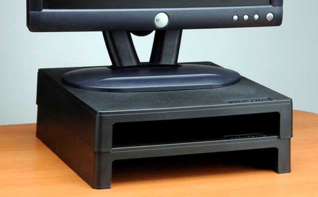 VUR 4855. Graphite. Each elevates monitor 2". Stacks. Each measures 11” x 11” x 2”. Supports monitors and machines up to 60 lbs. Great storage for paper and files. Patented.