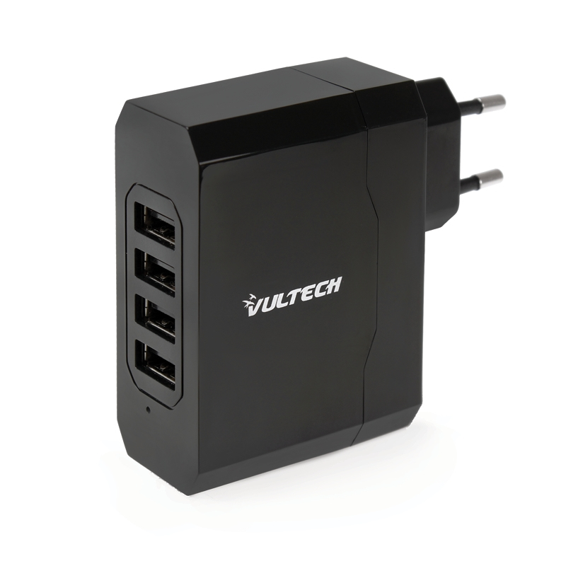 Vultech CC-048. Charger type: Indoor, Charger compatibility: Universal, Power source type: AC. Colour of product: Black. Input voltage: 110 - 240, Output voltage: 5 V, AC adapter output current: 4.8 A. Width: 28.5 mm, Depth: 77.5 mm, Height: 95 mm