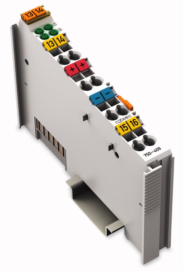 This digital input module receives control signals from digital field devices (e.g., sensors).