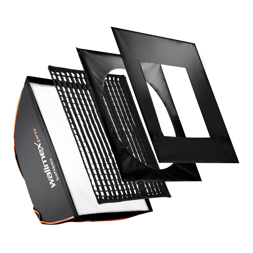 Walimex pro Softbox PLUS. Width: 700 mm, Depth: 310 mm, Height: 500 mm. Colour of product: Black